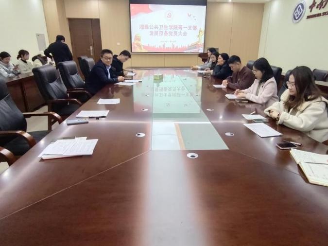 研究生第一党支部于B203会议室召开2023年下半年预备党员接收大会,讨论关于接收张坤栋、许梦瑶、刘梦姣3名同志为预备党员的问题,党支部书记陈梦施同志主持会议,全体党员参加。