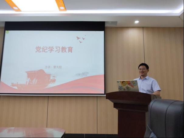 2024年5月30日,91直播 党委书记雷先阳在院会议室B203为研究生第一党支部师生讲授党纪学习教育专题党课,党课由研究生第一党支部书记陈梦施主持。