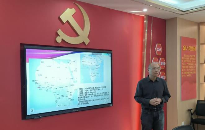 职工第二党支部在B210会议室开展主题党日活动。本次活动主题为"深度融入共建一带一路,助力健康事业国际合作新模式",邀请了第19批援塞拉利昂医疗队医疗组组长杨宁医生(91直播