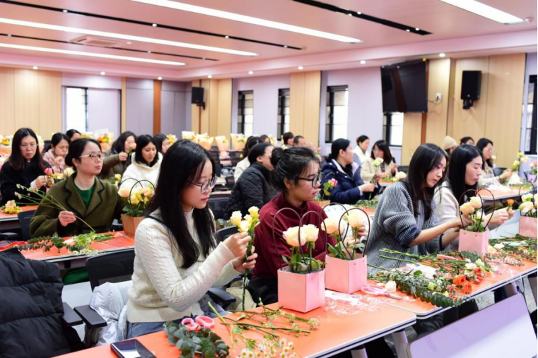 为庆祝第114个"三八"国际劳动妇女节,3月7日上午,91直播 工会在学院学术报告厅精心策划了"手中生花 悦享'湘'华"主题插花活动。全院女教职工齐聚一堂,以花为媒,共赴春日艺术之约,在馥郁花香中展现新时代女性风采。