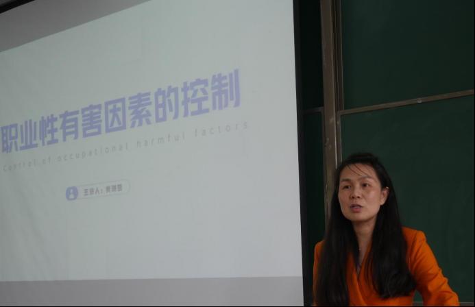 4月7日课程思政示范课堂现场观摩课由黄瑞雪教授主讲,课程名称为《职业卫生与职业医学》,课堂内容为“职业性有害因素的控制”,课堂上黄瑞雪教授紧紧围绕“控制有害因素、保护劳动者健康”,通过多样化的授课形式、良好的课堂互动氛围、实地的教具设备演练等方面,讲述了职业性有害因素控制的重要性及有效举措。