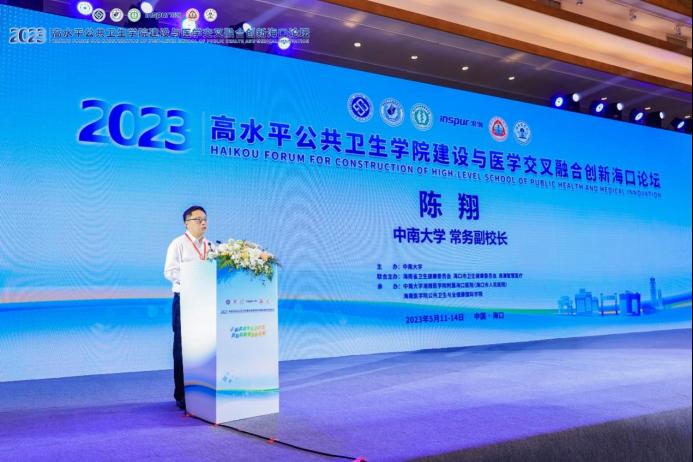 陈翔常务副校长在致辞中指出,党的二十大对新时代卫生健康工作提出了新的要求,坚持以人民健康为中心,要求我们未雨绸缪,培养高水平人才队伍,加快高水平公共卫生学院建设。此次论坛聚焦公共卫生建设和医疗大数据发展,将有力推动高水平公共卫生学院建设,深化公卫与数智医疗交叉融合,打造医疗卫生数智化新模式,为卫生健康事业提供更长远有效的服务。