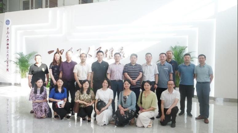 雷先阳书记对长沙市疾控中心杨学文主任一行来访表示热烈欢迎,这次座谈是继4月导师聘任仪式后的再一次会面,期待双方在科研合作上有新的突破。任国峰副院长从师资队伍、人才培养、科学研究、社会服务、国际合作与交流、平台建设等方面简要介绍了学院的基本情况和近年来所取得的成绩。
