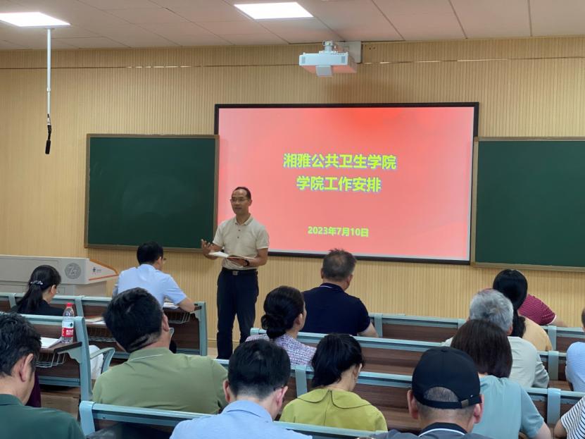 在学院B113教室召开了2022-2023年度第二学期期末教职工大会,学院领导班子成员和全体教职工参加会议。会议由院长胡国清主持。