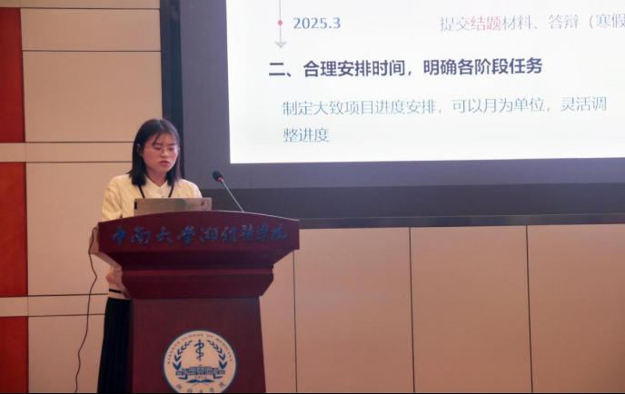 随后,周心怡同学在项目实施基本流程与经验、调查类和实验类项目执行要点、结题准备与成果输出三个方面进行了分享。