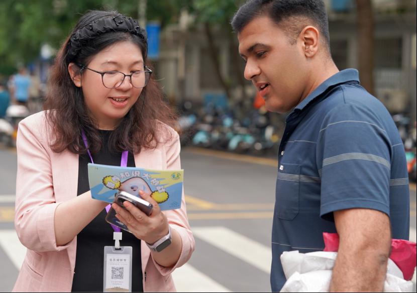 南校区二食堂门口开展2024年全民营养周知识宣传活动。活动期间,林茜教授解读了“减油、增豆、加奶”核心信息,引导学生们合理搭配日常膳食,养成良好饮食习惯。现场学生协助开展营养宣传、体脂检测、有奖竞答等活动,向大学生们解读了如何通过饮食调理、合理搭配膳食,营养充足地保持健康。