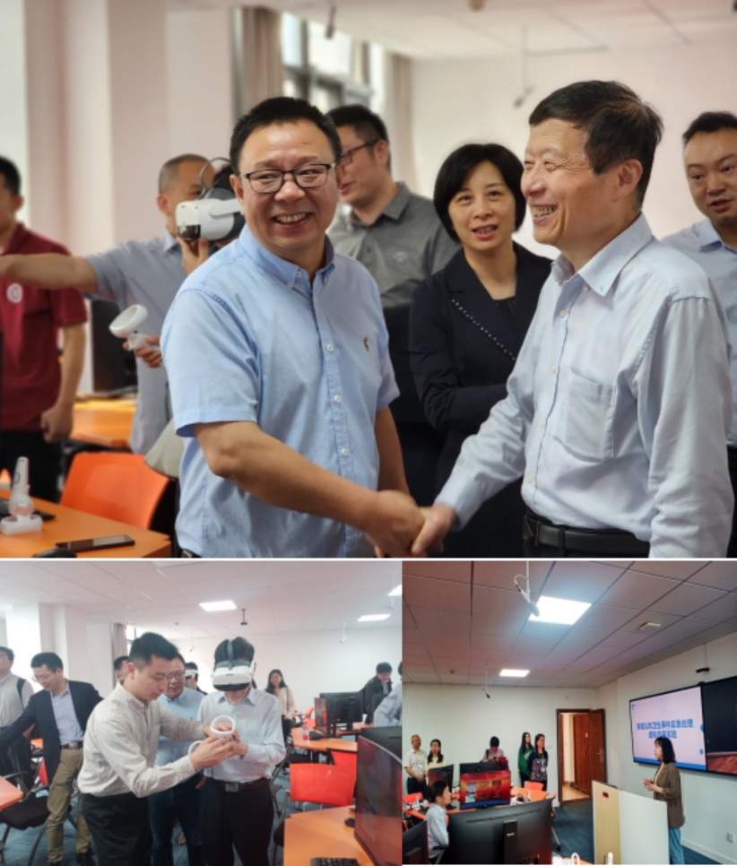 突发公共卫生事件应急处理虚拟仿真实验室,工作人员向刘院士一行简要介绍其主要功能。该实验室由学院专家联合湖南省疾病预防控制中心等多家团队共同打造,内容涵盖不明原因呼吸道传染病、自然灾害——地震、洪灾等引发的多个重大突发公共卫生事件应急处置案例,通过VR技术的沉浸式体验与交互式操作,培养医学生面对突发公共卫生事件时的应急处置能力,满足学生实验实训需求。未来,学院将继续打造突发公共卫生事件应急处置案例库,面向社会开放,为培养高层次公共卫生人才和专业人员突发公共卫生事件处置能力提供支持。