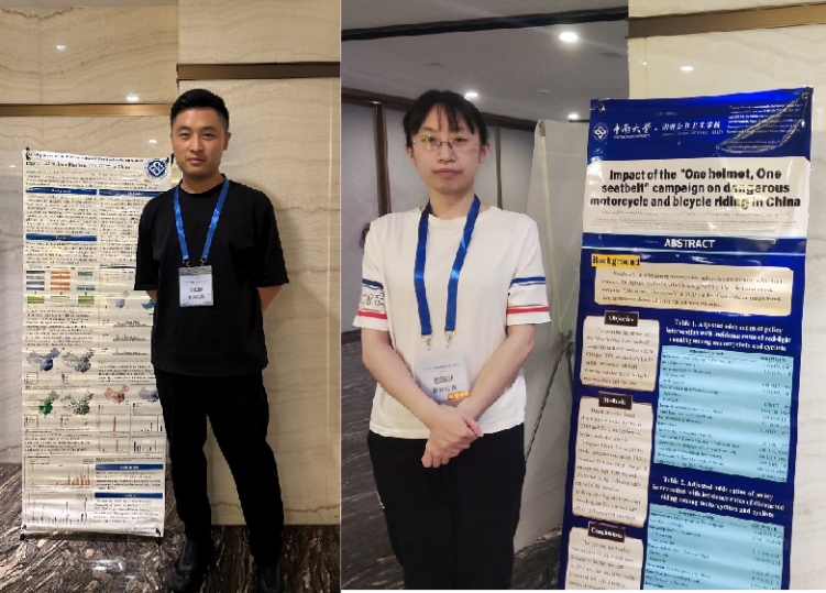 博士后肖旺欣和硕士研究生彭瑞莎分别进行了“我国儿童产品伤害网络文本大数据平台开发”和“一盔一带行动对中国摩托车和自行车危险骑行行为的影响”的海报展示。