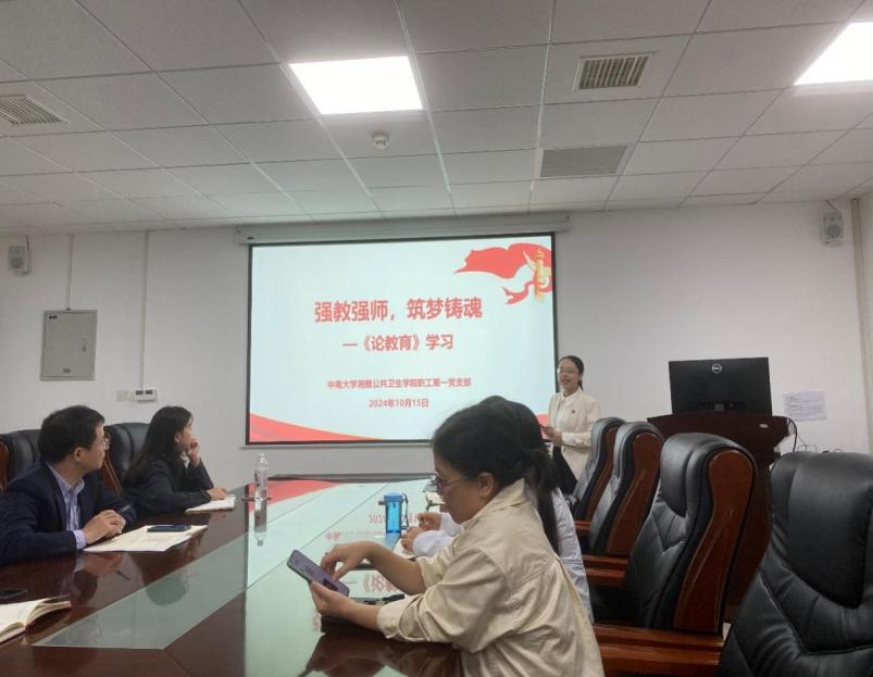 流行病与卫生统计学系(以下简称“流统系”)在学院B328会议室举办以“强教强师,筑梦铸魂”为主题的《论教育》专题学习会。流统系全体教职工参会,宁佩珊副教授组织学习。