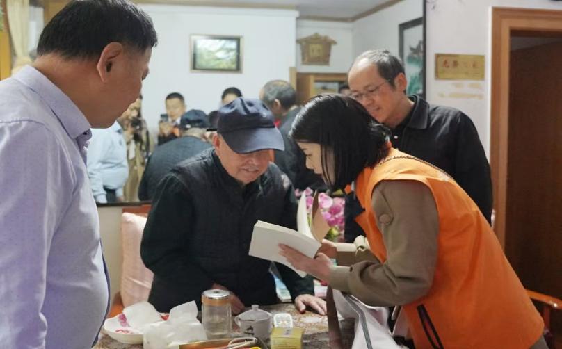 活动伊始,夏志平老师介绍了此次活动相关信息,并深情地表示李力夫老人是功臣,是学校、学院的宝贵财富,大家一直牵挂着老同志的健康和生活。随后,杜方冬副处长为老人送上礼物,并详细询问老人生活现状和困难,还留下了饱含关怀的慰问金等。接着,泰康之家集团送上精心准备的礼物,包括实用的拐杖、防滑袜等日用品,还有中粮集团提供的营养丰富的饼干、面条等食品,以及贴心的防诈骗提醒资料、91直播
