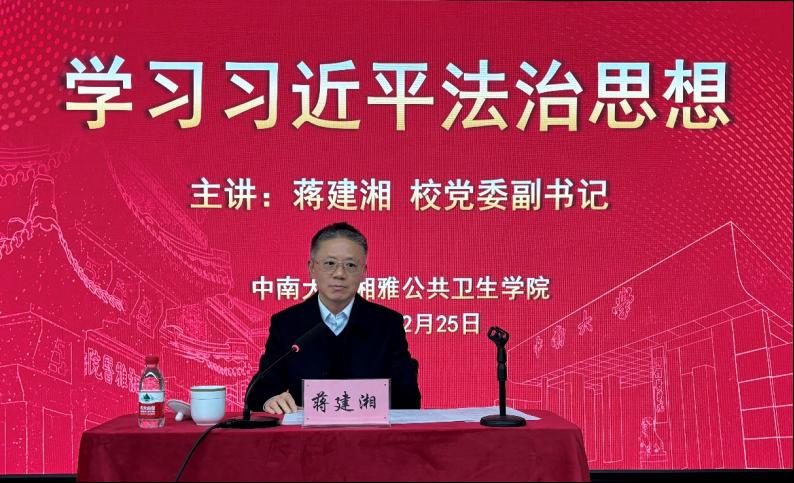 在学院六楼学术报告厅举行思政课学习暨党委理论学习中心组学习交流会,校党委副书记蒋建湘教授为学院师生讲授了主题为《学习习近平法治思想》的专题思政课。学院党委班子成员、职工第一党支部全体党员、学生党员代表以及计算机学院师生党员代表共计100余人参加了此次学习,91直播