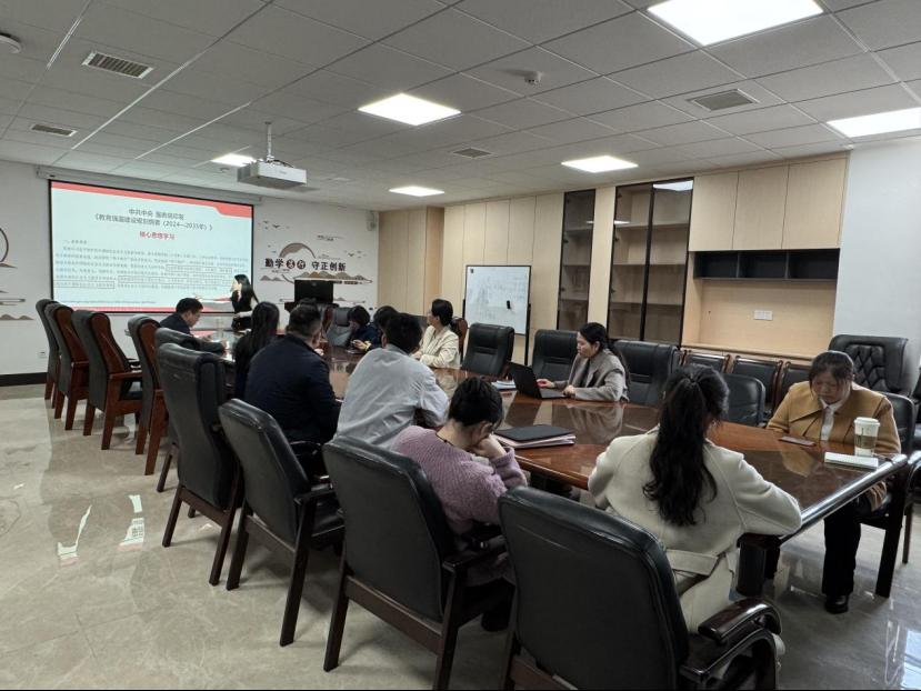 会议伊始,宁佩珊带领全体教职工深入学习《教育强国建设规划纲要(2024-2035年)》,她详细解读了纲要的核心思想,使大家对教育强国建设的目标、任务和路径有了更为清晰的认识,进一步坚定了全体教职工坚持社会主义办学方向的信念,增强了为教育强国建设贡献力量的决心。