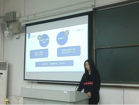 陈璐瑶同学从学霸辅导室的队伍组成及辅学活动的开展具体实施规则两个角度向大家进行了分享。她说明了本期辅学重点科目为系统解剖学及生理学,并将开展为期九周的辅学工作。在此期间,在各学科辅学组长的带领下,各位组员们将完成学习周、自习周及自习打卡等辅学活动。该辅学活动制度旨在提高同学们医学专业课程的学习能力,并为辅学帮扶活动的顺利开展保驾护航。