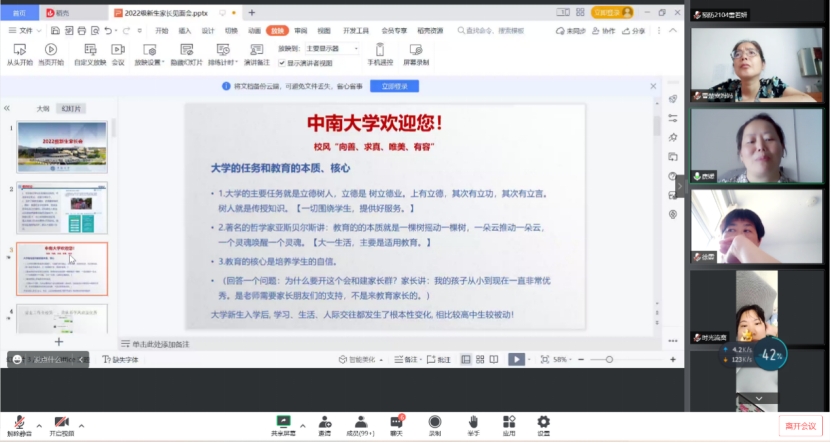 此次大会虽受疫情影响于线上举办,但经过老师们的认真准备与家长的积极配合圆满落幕,达到了加强家校沟通的目的。希望在学院与家长的密切配合、共同努力下,2022级新生能更迅速地适应大学生活、完成身份转变,不负老师与家长的殷切期望,昂首阔步、走好人生新征程的第一步,努力谱写属于自己的大学华章!