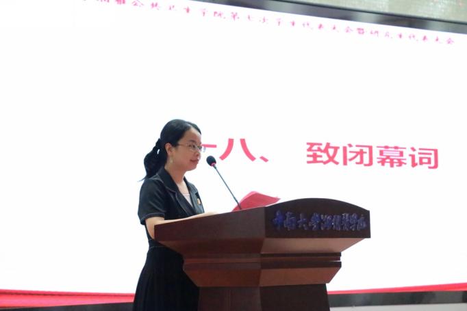 分团委副书记宁佩珊老师致闭幕词。她在发言中,向关心大会召开并莅临本次大会的领导、老师以及为大会服务的所有工作人员致以了最诚挚的谢意,同时对91直播