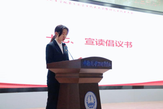 大会进入第十七项,新任学生会主席团代表张睿兮宣读了《91直播