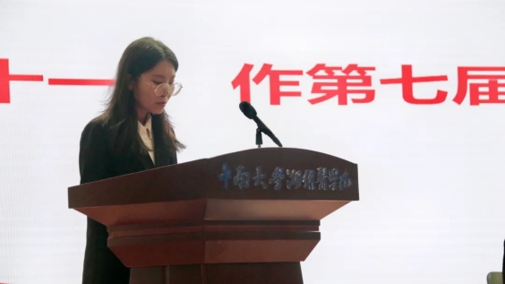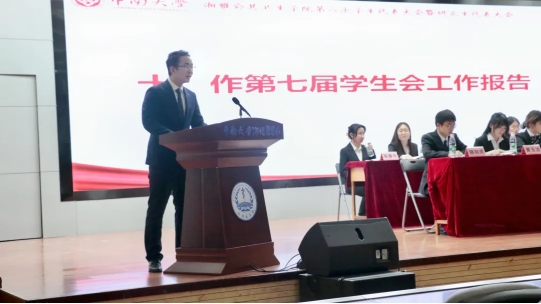 投票结束后,第七届学生会主席团成员蒋志豪、研究生会主席团成员蒋丽芳分别学生会工作报告和研究生会工作报告
