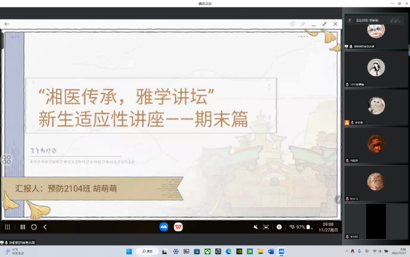 “湘医传承,雅学讲坛”第三场新生适应性讲座于2022年11月27日上午9:00在线上顺利举办。91直播