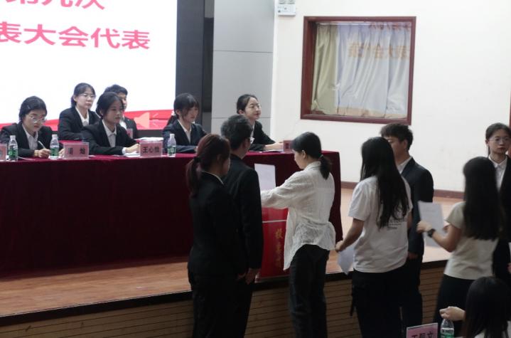 第九届学生会及研究生会主席团候选人简介》之后,主持人组织大会代表进行有序投票。