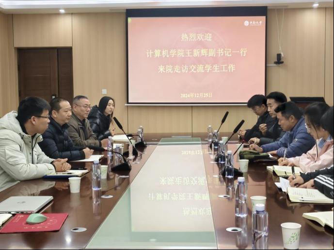 加强交流合作,互相学习学生工作经验。一方面,王新辉副书记介绍了计算机学院学工队伍分工情况;另一方面,他也提出了当前研究生管理难度大、部分毕业生存在就业困难的工作痛点。