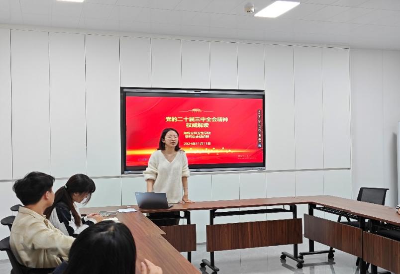 本次专题学习从党的二十届三中全会的重要成果,进一步全面深化改革的总目标和原则,经济民生领域改革、教育、科技、人才,创新领域改革、民主、法治领域改革等六个关键来帮助与会成员深入领会党的二十届三中全会的核心要点。同学们聚精会神、认真聆听,积极思考如何在自身学习与工作中实践全会精神,并结合自身经历展开交流。
