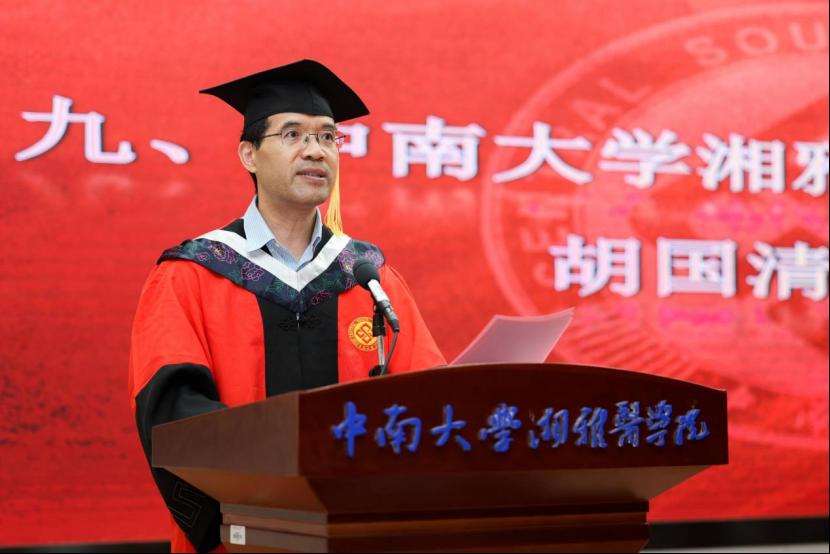 胡国清院长代表学院向所有顺利完成学业的毕业生表示热烈祝贺,向潜心育桃李的老师们、悉心养育学子的家长们致以衷心感谢。他高度肯定了全体毕业生付出的努力和取得的成绩,并深情寄语2025届全体毕业生,对同学们的未来人生发展提出三点希望:一是希望同学们厚植家国情怀,熔铸团队伟力;二是希望同学们信守正道沧桑,笃行实干兴邦;三是希望同学们持守诚信之本,善用方法之钥。