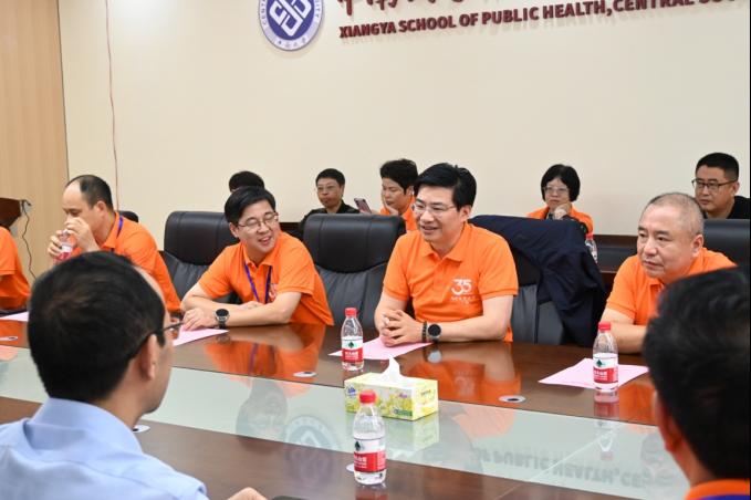 搬迁湘雅新校区后88级校友的第一次到访,学院党委书记雷先阳、院长胡国清、党委委员尹逊强出席本次校友聚会交流活动,与返校校友们畅谈三十年变迁,共话师生情谊。