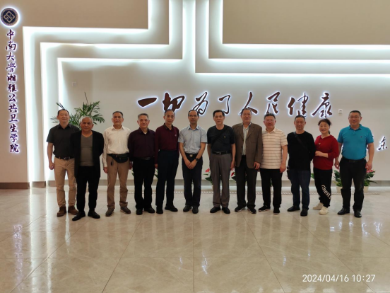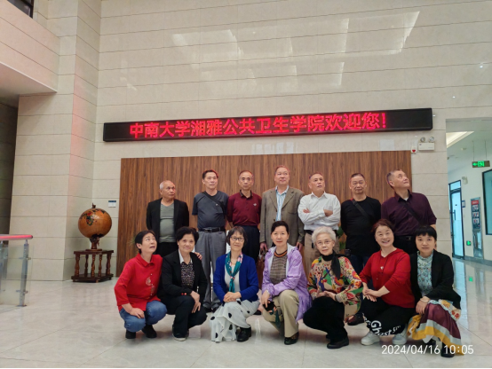 2024年4月16日上午,康玉唐教授等十余位1975级校友相聚母校,共忆芳华、畅叙情谊。学院胡国清院长、学院原党委书记杨土保教授接待了返校校友一行并合影留念,学院党委副书记王超、学工办副主任尹逊强带领校友参观了湘雅公卫新大楼。